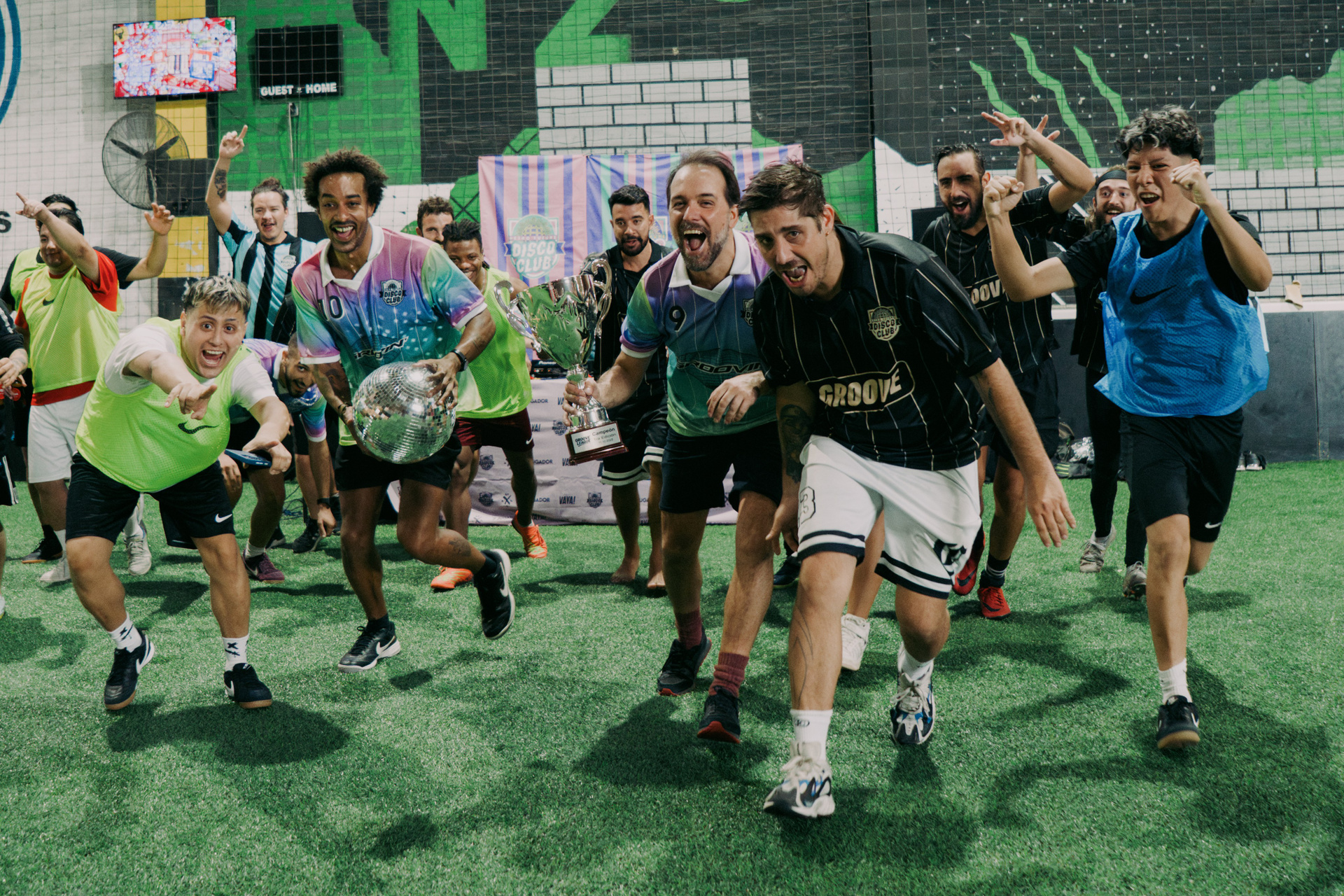Concepto Fusión entre fútbol y cultura urbana nocturna. Estética lifestyle que muestra al equipo con actitud, estilo y energía de club.